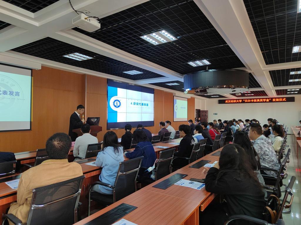 11月18日下午,新葡的京集团8814“贝尔卡崇真奖学金”发放仪式在崇德楼308演播厅举行,武汉贝尔卡药业有限公司总经理袁智才、人力总监高辉、外贸经理吴彬、运营总监万子豪等企业方代表应邀参加发放仪式并与现场师生交流互动。学校教育发展基金会副秘书长苗淑贤、学工部副部长武猛、创新创业学院副院长凡蓉蓉及新葡的京集团8814院长段丁强教授、党委书记毛长文教授、党委副书记黄俊鹏、师生代表参加发放仪式,仪式由辅导员庞浡主持。