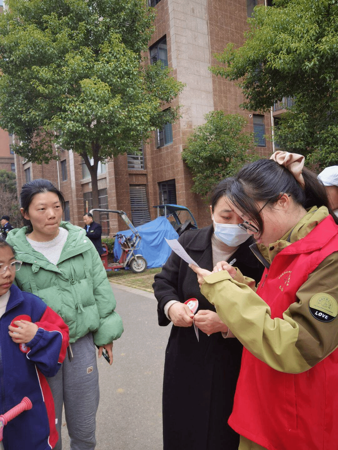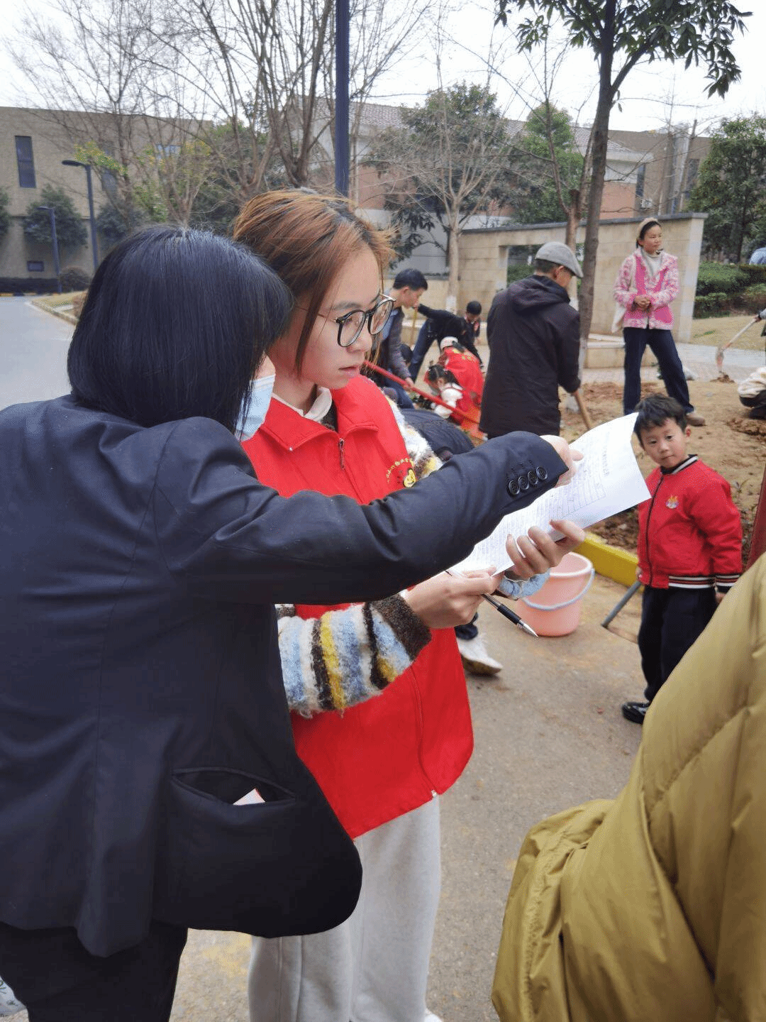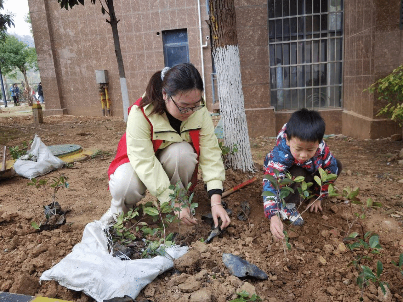 社区绿化带边热闹非凡。志愿者们热情地引导居民登记,确保活动有序进行。接着,便是热情地投入到分发树苗的工作中。面对充满好奇的孩子们,志愿者们耐心地解答他们关于树苗的各种问题,处处充满欢声笑语。