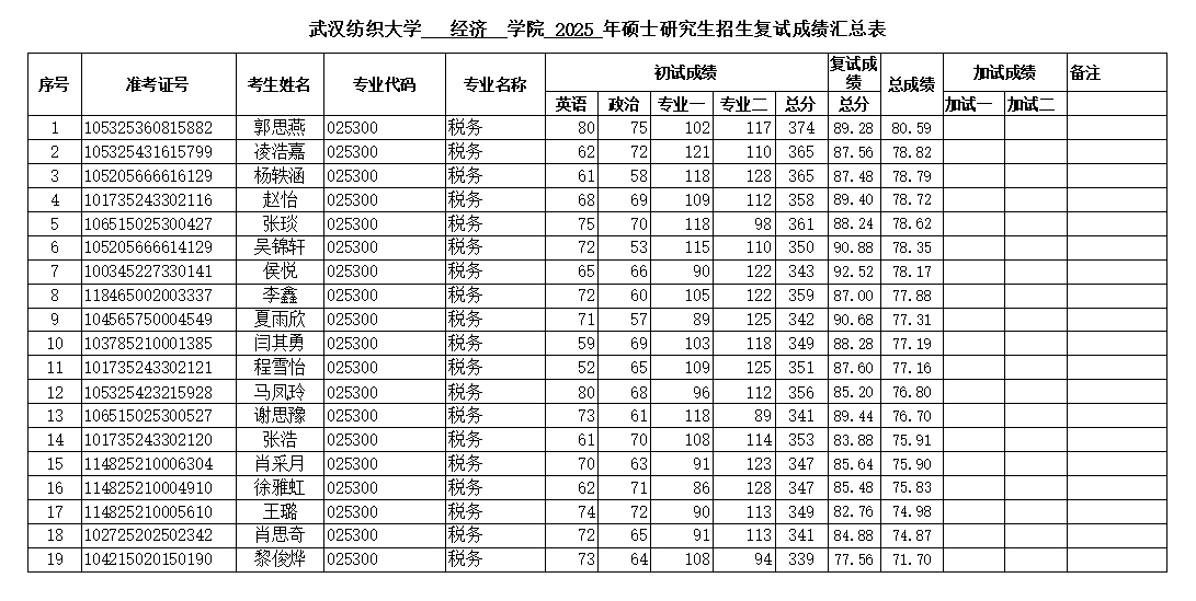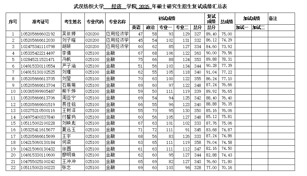 根据教育部《关于做好2025年全国硕士研究生招生录取工作的通知》、《2025年全国硕士研究生招生工作管理规定》、新葡的京集团8814研究生院《2025年招收攻读硕士学位研究生复试录取方案》、《新葡的京集团88142025年硕士研究生复试录取工作实施细则》等文件精神,我院于2025年4月10-11日规范组织开展了2025年硕士研究生复试工作。经专业课笔试、外语能力测试、综合素质面试等环节,已全部完成2025年我院研究生招生复试(调剂)工作,复试成绩已报学校审核,现公示如下: