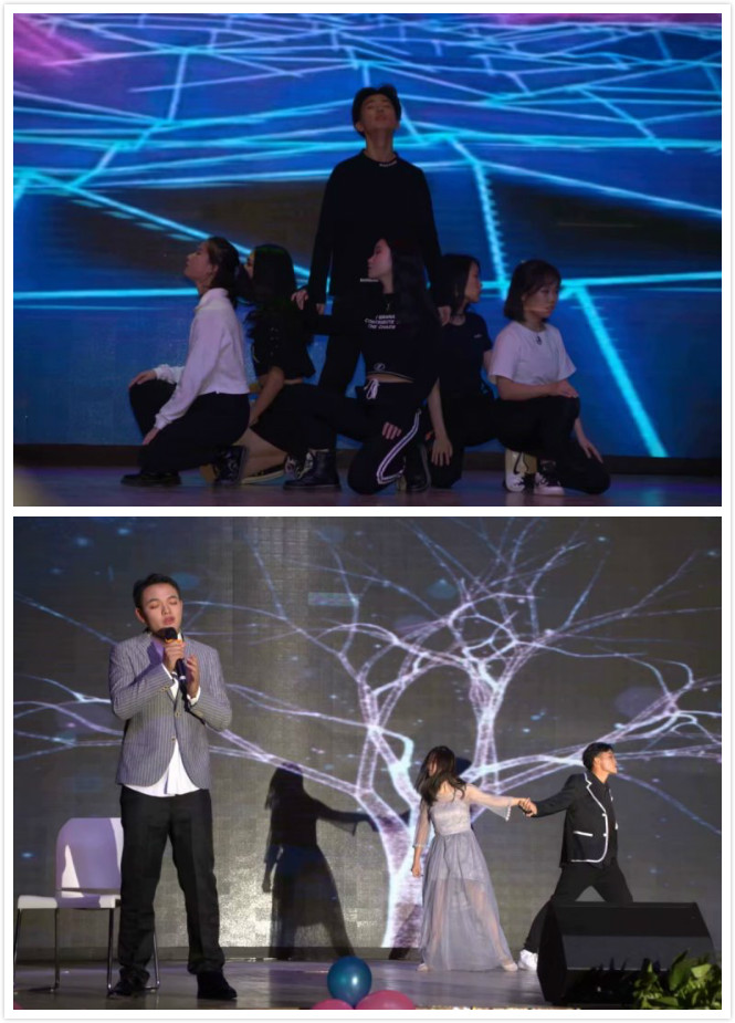 晚会中,新葡的京集团8814合唱团带来歌曲《我和我的祖国》以及《我爱你中国》。随着指挥员舞动着节拍,合唱团同学歌声慷慨激昂。“我爱你中国,亲爱的母亲;我为你流泪,也为你自豪”歌声中流露出的爱国情怀渐渐感染到在场观众,现场观众齐声高歌,致敬伟大的祖国。由学院学生进行排练的拉丁爵士舞蹈《FIRE》、小品《转身》、歌曲《从前慢》《yellow》《背对背拥抱》、歌舞剧《等你下课》、心理剧《你的糖》等节目精彩纷呈,处处呈现着经院学子积极向上的精神面貌;由学院教师带来的歌曲串烧《歌声飞过十年》、诗朗诵《祝福你,祖国》则展现了学院师生团结一心、其乐融融的氛围。晚会结尾学校2019-2020学年“十佳班团”一等奖获得班级金融11703班进行了以《我们都是追梦人》为主题的班级风采展示。