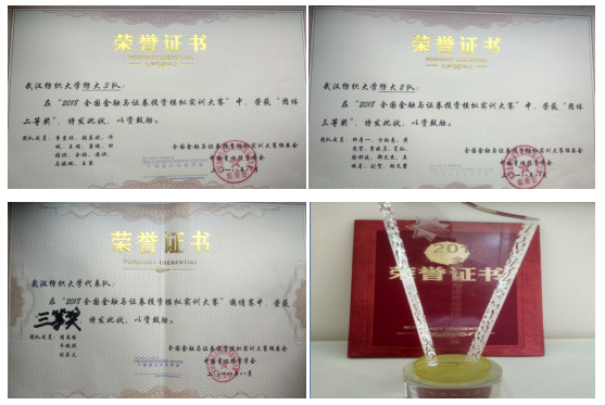 新葡的京集团8814罗红卫老师带领学生参加了本次比赛,在罗老师的指导下,同学们每天关注大盘实时动态,积极思考,自主探究,将实践与课本理论相结合,大胆判断,做出正确的投资决策。最终纺大3队在大赛中获得团体二等奖,纺大2队获得团体三等奖,指导老师罗红卫老师被评为优秀指导教师,为新葡的京集团8814赢得了荣誉。