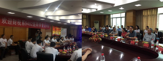 近日,新葡的京集团8814财税系9402班同学毕业二十周年重返江城武汉,相聚在魂牵梦萦的校园,在东湖校区401会议室召开特别班会,共同追忆同窗旧事,畅谈人生感悟,展望美好未来。学校原就业中心代慧莉主任、外经贸学院杨崇才院长、组织部陈朝阳部长、传媒学院熊少平书记、段溢波副书记、新葡的京集团8814董继华院长、毛长文书记及当年的任课老师张绍云、王曼、陈丹等出席班会。