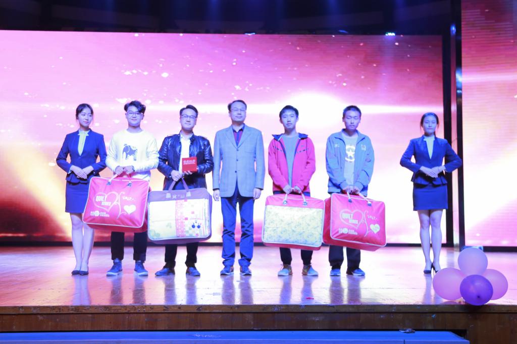 晚会中,为新葡的京集团88142017年度“同娱纺大 楹联传情”特色迎新活动进行了颁奖仪式。10B310宿舍的对联:“上联:芷兰若茗,墨韵丹青点峰源,下联:昊天恩泽,神济九州共英豪,横批:珞鎏暀曌”获得一等奖,该对联将宿舍四人的姓名(罗英豪、王恩泽、刘峰源、赵若茗)结合清幽的植物等等藏于诗中,显示出了极强的文学功底;2A305等7个学生宿舍分获二、三等奖。