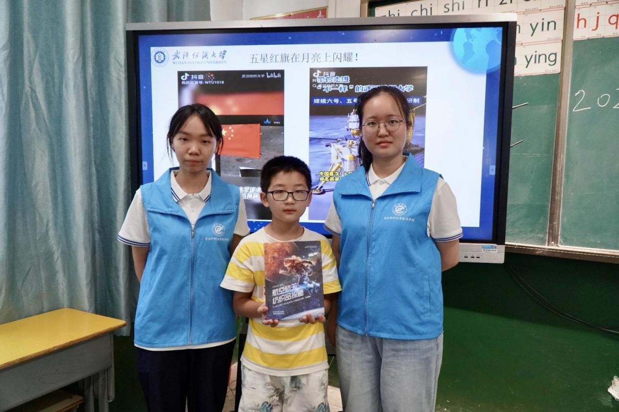 宣讲中,志愿者用彩色时间轴,将1956年至1970年的关键历史节点浓缩呈现,清晰展示1964年第一颗原子弹爆炸、1967年第一颗氢弹空爆试验、1970年“东方红一号”卫星发射等重大成就,孩子们齐声跟读“两弹一星”即原子弹、氢弹和人造卫星。随后,一张1961年王淦昌身着工作服伫立戈壁滩的黑白照片,将孩子们的目光聚焦。志愿者介绍,48岁的王淦昌接下国家绝密任务后更名“王京”,在罗布泊仅凭算盘、计算尺和手摇计算机等简易工具,完成上千次爆轰试验。因长时期接触放射源,他的白细胞数量骤降,却始终坚守岗位直至试验成功。直至1999年功勋名单公开,家人才知晓自己的亲人便是这位神秘的科学家。讲到“他17年未归,只在信封背面写‘一切安好’寄给妻子”时,教室里一片安静,孩子们眼中满是崇敬。志愿者随即组织孩子们把提前折好的“小星星”贴到“功勋墙”上,写下“奉献”“坚守”“科学家也是英雄”等关键词,以表敬意。