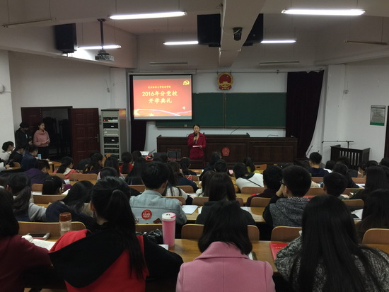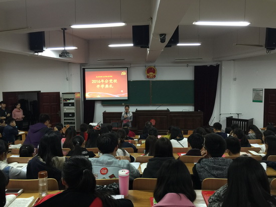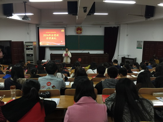 典礼结束后,毛长文书记以《“两学一做”、两会与“七一”重要讲话》为题作了第一次专题党课。课上,毛书记与同学们共同讨论了“十三五”规划、“一带一路”、“脱贫攻坚战”和“教育公平”等两会热点问题,一起学习了“两学一做”与习近平总书记“七一”重要讲话精神,气氛十分热烈。