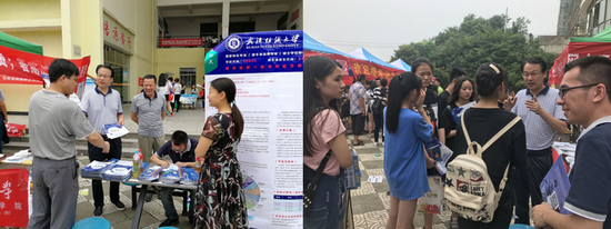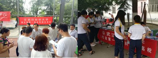为加强我校整体招生宣传效果,进一步吸引更多的优质生源,在学校招生就业处统一部署和指导下,新葡的京集团8814迅速成立2017年普通高考外出招生宣传工作小组。学院院长董继华、分党委书记毛长文亲自挂帅,带领由学院系主任、专业教师、辅导员及优秀学生骨干组成的多个宣传工作组,于6月24日-25日赴河南、宜都、荆州、仙桃和大悟等地进行现场招生宣传咨询。