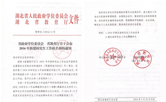 近日,省政府学位委员会、省教育厅公布了2016年新建研究生工作站名单,我校新葡的京集团8814与长江成长资本投资有限公司合作建立的研究生工作站获批。