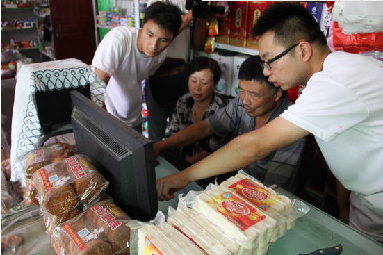 宣讲后,队员们深入走访当地小卖部,了解到小卖部常因信息、交通不便等因素导致商品供货不及时、进货渠道单一。于是,队员们纷纷为乡民们普及“网络购物”等电子商务知识,并现场给小卖部刘老板示范网上购物操作流程,刘老板对网购的便利、品种齐全的商品表示出极大的兴趣,感谢队员们拓宽了他的进货渠道。