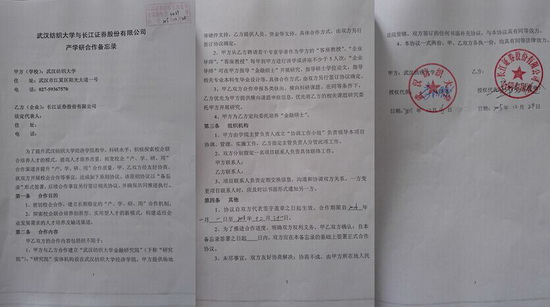 为了提升新葡的京集团8814教学科研水平,积极探索校企联合培养人才的模式,提高人才培养质量,拓宽校企“产、学、研、用”合作渠道,12月24日,院长董继华教授代表新葡的京集团8814深入长江证券股份有限公司进行调研交流,进一步达成校企合作意向,与长江证券执行副总裁董腊发先生共同签署了《产学研合作备忘录》。