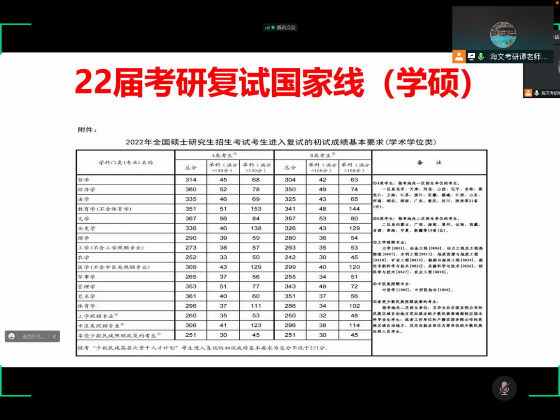 为让20级学子了解考研相关政策及新葡的京集团8814考研相关情况,充分调动20级学子考研积极性,更好的做好考研复习和备考工作。新葡的京集团881420级于11月20日晚开展线上考研规划指导讲座。本次讲座特邀海文考研谭晓禹老师为大家进行讲解。