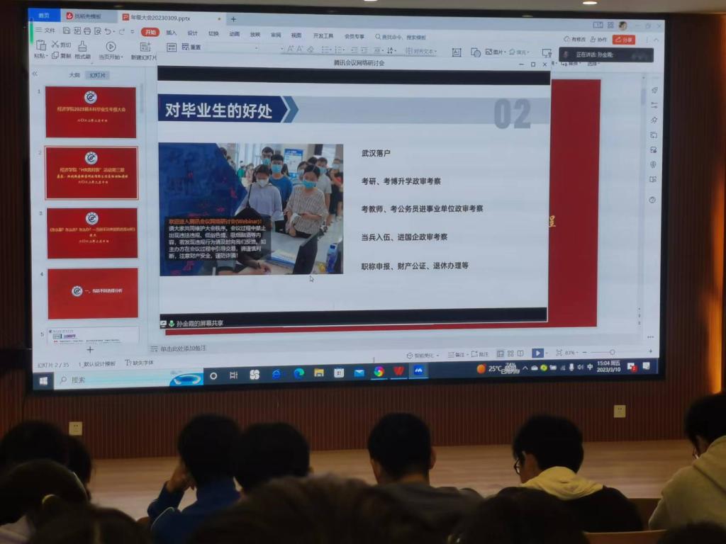 为服务助力毕业生就业创业,3月23日下午,学院2023年第四期“经心职语 筑梦护航”HR面对面活动在崇德楼T301演播厅举行,湖北人力资源中心档案公共服务部副部长孙金霞应邀线上做客主讲,学院2023届本科毕业生近200人线下参加活动,活动由毕业生辅导员凌杰主持。