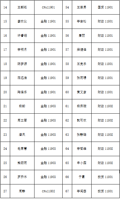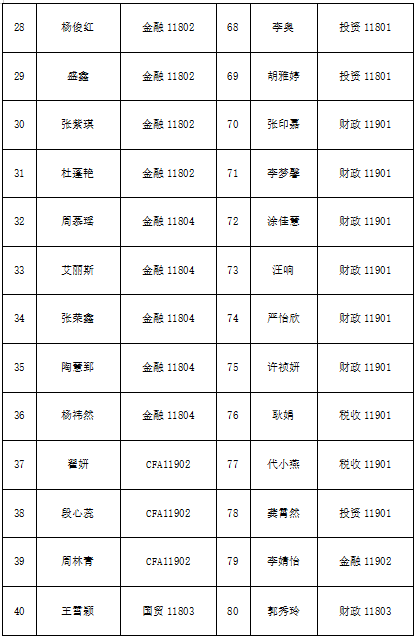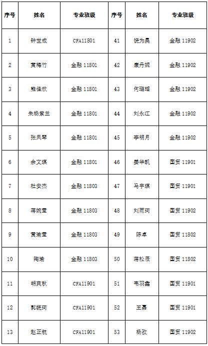 通过各班团支部推选优秀学生为预备党员候选人,经金融学生一支部、金融学生二支部、国贸学生党支部、财投学生党支部对候选人员进行考察,在一年考察其中将表现优秀的入党积极分子上报学院党委。现经学院党委研究,拟发展通过各班团支部推选优秀学生为预备党员候选人,经金融学生一支部、金融学生二支部、国贸学生党支部、财投学生党支部四个学生支部对候选人员进行考察,在一年考察其中将表现优秀的入党积极分子,上报学院党委。现经学院党委研究,拟定钟世成等80名同学为预备党员,现予以公示。公式期为: 2021年4月22日-2021年4月28日。如存在对以上同学在学习、生活中的情况有异议的,可向新葡的京集团8814党委反映。具体名单如下: