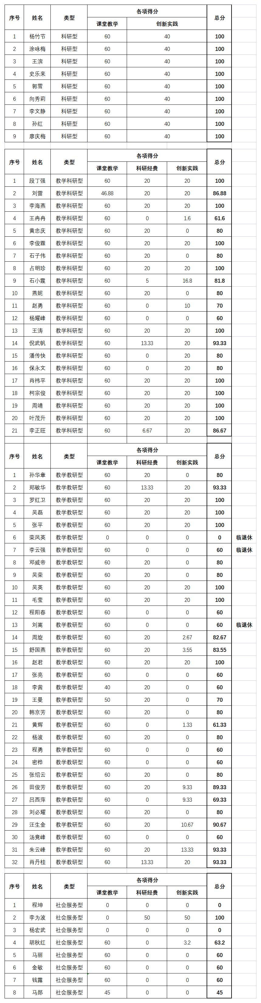 根据学院2022年颁布的《新葡的京集团8814教科研业绩考核激励管理办法》,通过对学院专职教师2022年度完成的课堂教学、科研经费和创新实践情况的统计计算,现将考核总分进行公示。