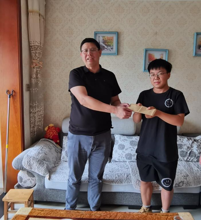 8月28日,刘园美、李静宇、马晓雪一行来到武汉市江夏区,前往新葡的京集团88142022级学生金成安的家中开展家访。据了解,成安的父亲在今年3月进行了手术,长时间的康复期一直由成安陪护,但他没有落下学习和停下为班级服务的脚步,利用日程规划思维导图做好时间管理,克服学业家庭双重困难,在期末考试中依然取得了优异成绩,收获了师生的一致好评。刘书记向成安父亲详细介绍了成安在努力学习、服务同学、参加学科竞赛等方面的优异表现,特别是对成安像个男子汉一样,在父亲最需要的时候陪伴左右的孺慕之情点赞。刘书记鼓励成安要继续在思想上、行动上发挥引领作用,“相信你在学校和家庭都能成为榜样”。交谈中,刘书记以学院名义向成安赠送了补助金和慰问品,鼓励他只要勤奋努力、充满自信,一切困难都会迎刃而解。