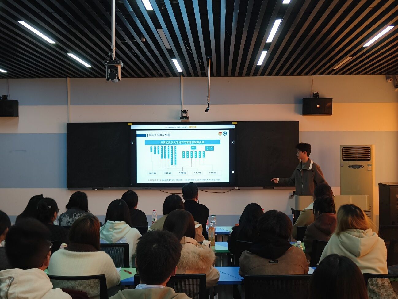 为不断加强对学生骨干的政治训练和思想引领,切实提高学生骨干政治素质和履职能力,11月19日,新葡的京集团88142023年“青马工程”培训班在崇德楼305智慧教室开展第二次学员培训。武汉大学经济与管理学院学生会执行主席黄竞标应邀为培训班学员讲授第二讲。